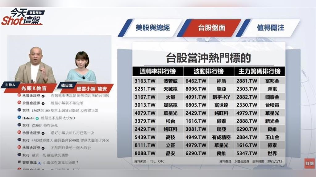 萬海火燒船後逆勢大漲5%,主力在拉抬還是出貨?今天Shot這盤將由美股、台股、焦點族群及當沖熱門觀察等資訊,幫您做盤前解析。本(12)日直播重點如下: