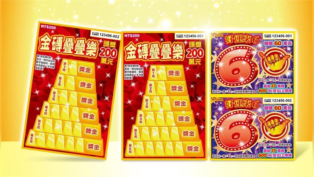 「金磚疊疊樂」頭獎200萬元 「好運來6」刮6贏獎金