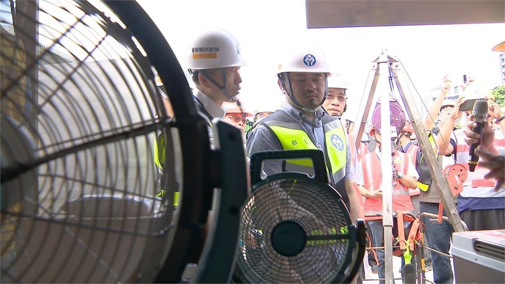 炎炎夏日來臨!也讓戶外工作者面臨中暑、熱衰竭等風險提高,為了預防熱危害,勞動部今天(23號)在土城國3增設金城交流道工程,舉辦"高氣溫作業,熱危害預防示範觀摩會",部長洪申翰也親自到場,了解最新的降溫設備,如風扇背心、風扇安全帽等,同時公布高溫熱危害預防的四項政策,及六項修正指引。