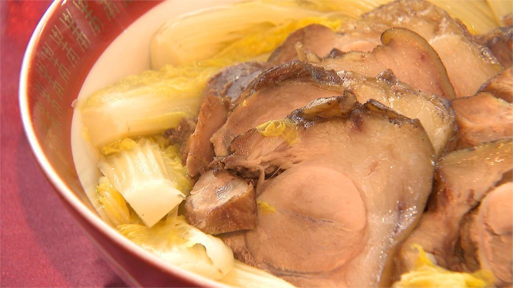 把一人份麵線,放進滾燙鍋中,60秒就能起鍋,五星主廚示範,擺上上湯白菜,在鍋邊淋熱騰騰高湯,豬腳麵線這道菜,今年是閏六月,出嫁女兒會送父母添壽,食品集團舉辦料理教室活動,讓台下民眾們聽得樂開懷。