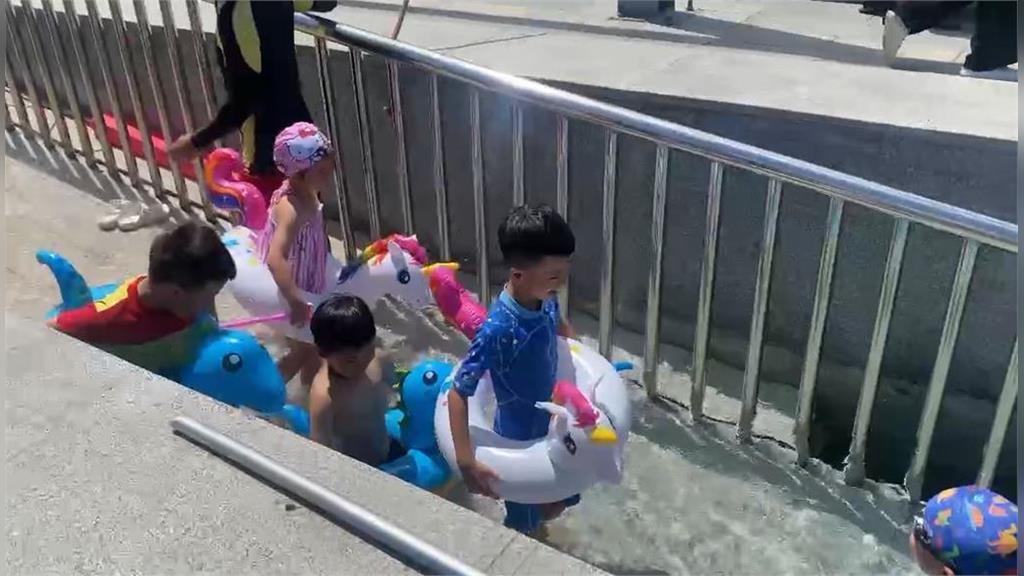 進入夏季、熱浪來襲,許多民眾都找地方戲水消暑,就看小朋友們,帶著可愛的造型游泳圈,迫不及待的開心下水,準備要和魚兒共游!小朋友:「(跟魚一起游泳感覺怎麼樣?)還不錯。」家長:「裡面很多魚,小朋友玩得還滿開心的。」不只小朋友,阿伯也自在的漂在水面上,看起來真的好涼爽。