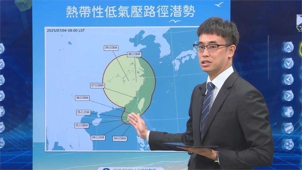 未來降雨趨勢,李孟軒表示,6日開始至7日熱帶性低氣壓或是颱風的影響,5日是接近過程,降雨會以偏南部、東南部雨量上比較多一點,中部、花蓮地區也會有局部短暫陣雨,東北部也會有陣雨情形,北部地區預估會是偏午後雷陣雨為主。