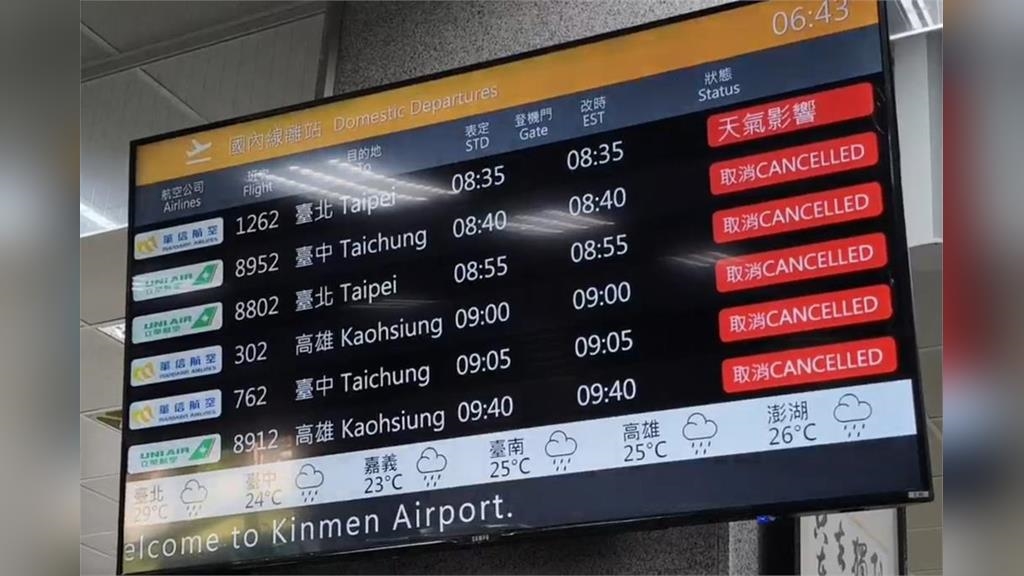 7.金門-五通:部分停航(10時30分起開航18航次,停航6航次。)