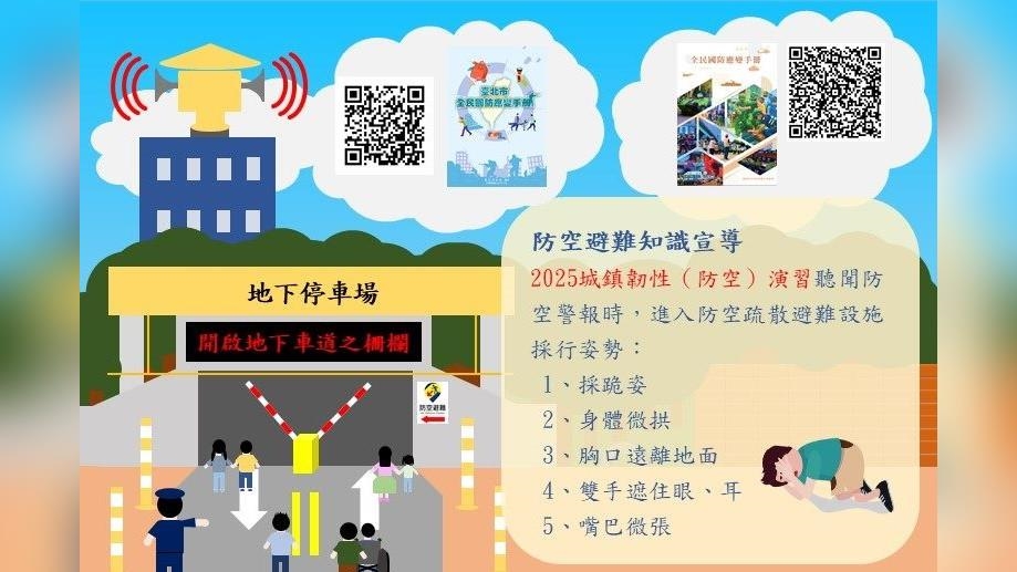 「2025年城鎮韌性(防空)演習」,北部地區將於7月17日下午1時30分至2時舉行,演習期間將進行警報傳遞與發放、疏散避難、交通及其他必要管制措施,各地人、車及各場所均須配合管制與避難演練。台北市政府呼籲民眾,以及來訪的國內外旅客,配合相關演練措施,並預先規劃行程,避開演習時段安排外出活動。