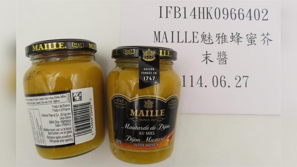 民眾:「不要買,就不要吃啊,農藥殘留吃了對人體不好。」水果行業者:「以我們現在今年來講,(榴槤產地)是以馬來西亞跟越南,為一個大宗,他們會做一個消毒的動作,就大量消毒然後進來這樣子。」被譽為"法國芥末醬代名詞"的知名品牌,也被檢出漂白劑"二氧化硫"濃度超標,從食藥署網站查詢,由河洛企業進口的法國芥末醬,光是近三個月內,已有四批驗出不合格,目前皆以要求退運或銷毀。