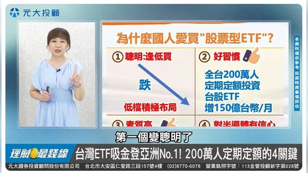 《睿涵說財經》台灣股票型ETF規模 超越陸.韓總和 ◎台灣ETF吸金登亞洲No.1! 200萬人定期定額的4關鍵 ◎ETF三趨勢! 台日互掛.股債配置.螞蟻雄兵錢進台股 ◎從吸金到提醒! 台灣ETF爆發背後暗藏3大風險必看 主持人 元大投顧董事長 胡睿涵/證券分析師 【本公司與節目中列舉分析之個別有價證券無不當之財務利益關係,本節目資料僅供參考,投資人應獨立判斷,審慎評估並自負投資風險。】