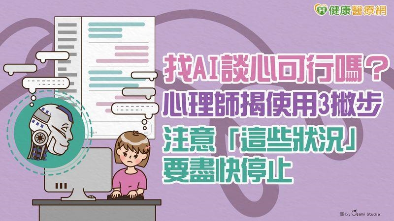 隨著ChatGPT、Claude、Gemini等AI聊天機器人的蓬勃發展,越來越多人習慣「凡事先問一下AI」,就連遇到情緒困擾也會向AI求助。蘇琮祺諮商心理師表示,AI可提供即時、基本的協助,但無法長期取代真人的陪伴,應將其定位為工具。他也為大家說明找AI談心的小撇步,以及使用時應該注意的事項。