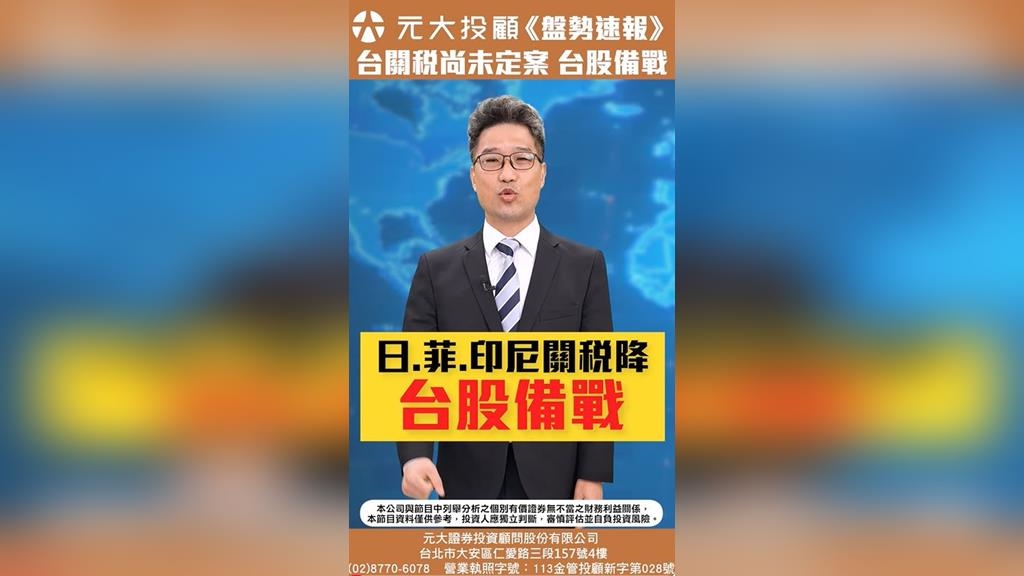 給我一分鐘帶你看,日本、印尼、菲律賓關稅降,台灣關稅尚未定案,台股備戰,由元大投顧專業經理林蔚辰證券分析師為您解析。