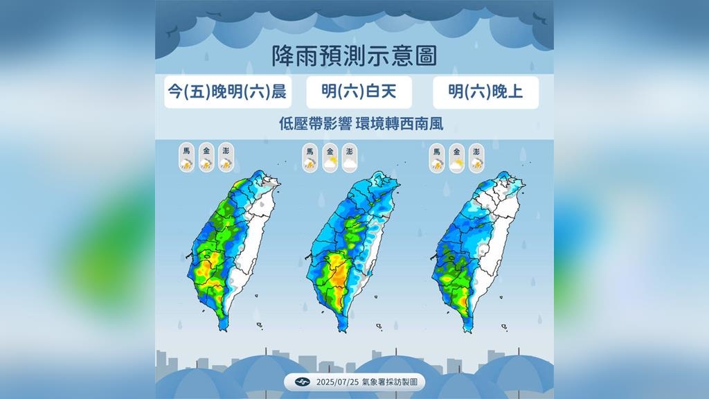 明(26)天是首波大罷免投開票日,根據中央氣象署天氣預報,台灣西半部是局部短暫陣雨或雷雨的天氣,東半部則有午後雷陣雨。若民眾出門投票,西半部縣市可把握間歇的降雨空檔,東半部則可趁上午天氣較穩定去投票。