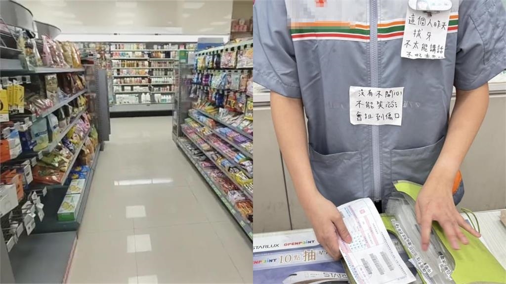 1名網友在臉書社團「路上觀察學院」發文表示,他前往超商消費結帳時發現,超商的女店員態度冷淡較少言語,他還注意到女店員制服上貼著兩張紙條,上頭寫到「這個人昨天拔牙,不太能講話,不好意思」,也特別解釋沒有笑容的原因「沒有不開心,不能笑會扯到傷口」。原PO才知道女店員原來是深怕拔牙後不能講話,而被顧客投訴服務態度不佳。對此,原PO暖心呼籲大家「期盼大家在日常生活中要多一份體貼待人的心。離開時祝他早日康復,週末愉快。」。