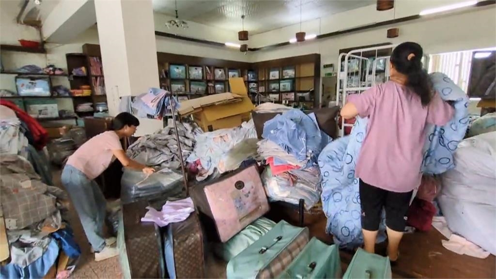 當地民眾熱心幫忙拍影片宣傳,雖然這些棉被些微潮濕,但清洗過後都還能用,品質也不錯,民眾趁機來撿便宜。