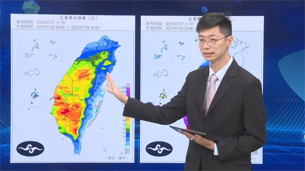 劉沛滕說明,週六(8月2日)、週日(8月3日)整體降雨將會趨緩,但中南部還是會持續下雨;北部及東半部地區大致為多雲的天氣型態,但也需注意午後雷陣雨發生。