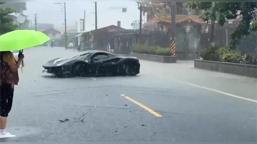 【原文出處】:嘉義六腳淹大水 黑色法拉利對決深水區下場曝