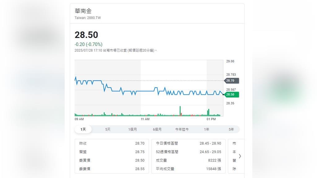 熱門存股標的--華南金控(2880)今天公告除權息日期,今年將配息1.25元,加上0.1元股票股利,預計除權息基準日在8月19日,以今天股價收在28.5元來計算,現金殖利率約4.38%。