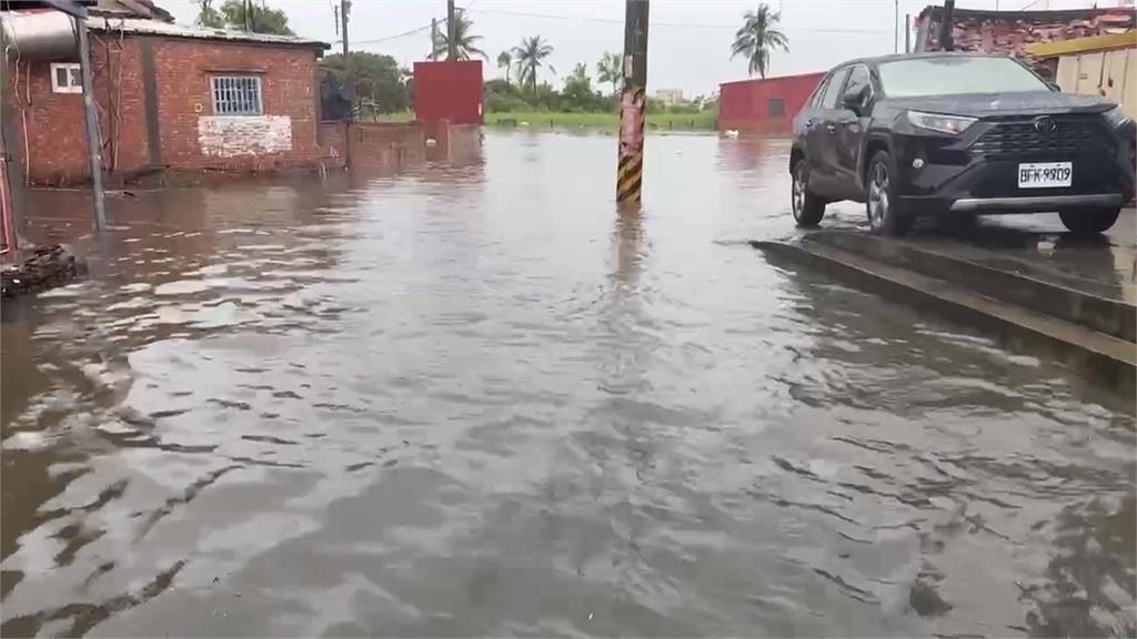 開著小發財車一路破浪前行,眼前景象不誇張汪洋一片,三合院前廣場積水難消退,無奈變成大水池。這一頭民眾開車,行駛鄉間產業道路,但兩旁低窪的農田,全部被水淹滿,甚至溢到路面,路不成路,趕緊調頭,險象環生。地勢較低的民宅,更是首當其衝,水整個往裡頭灌,住戶一整夜無法入眠,與大水對抗,開始把家具往上墊高,避免受災減少損失。