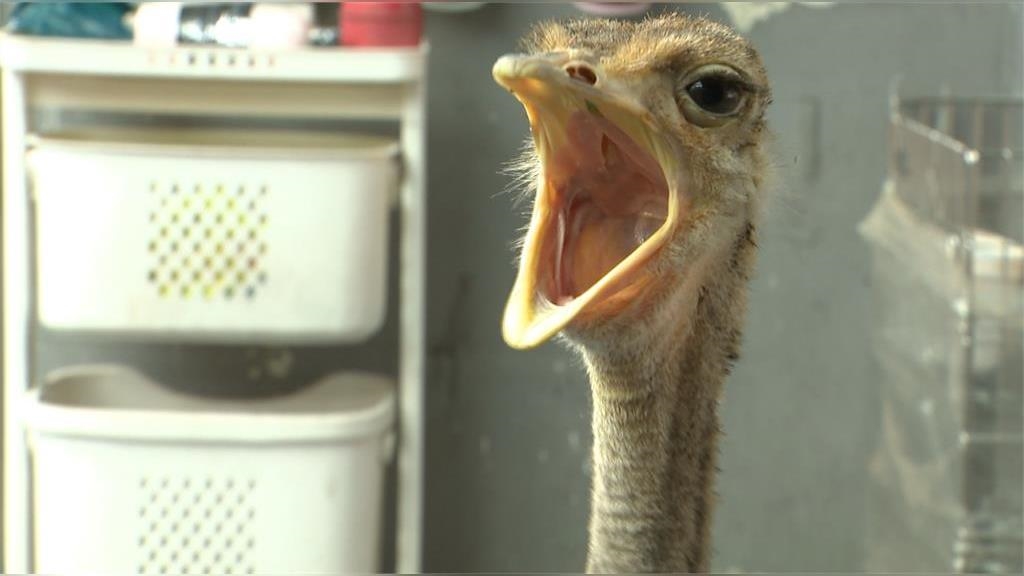 這頭鴕鳥名叫奔奔,平常養在汽車美容店,晚上就放出籠子在店內自由奔跑,目前三個月大就跑得飛快,飼主每天得帶牠出來放電。汽車美容店長黃聖凱:「牠如果真的要衝,牠起步跑得是比人還快,基本上繩子都會抓得滿緊的,因為這個跑掉要把牠抓回來,我們也應該滿費力的。」奔奔是美容店老闆放養在台北,曾有民眾檢舉讓動保處上門關心,但鴕鳥不屬保育類,只要繫好牽繩都沒問題,而且奔奔沒有攻擊性,只是有點活潑。