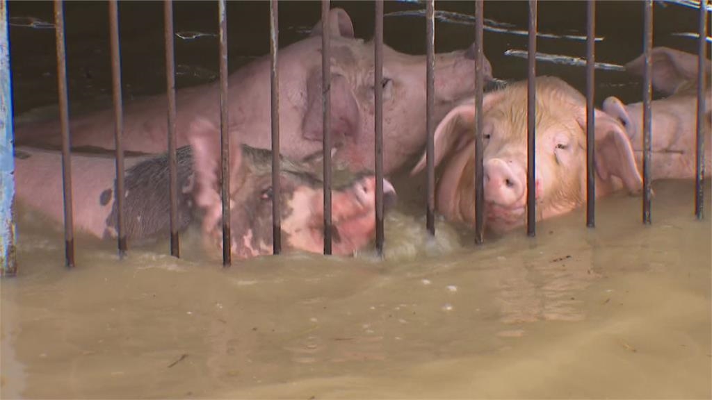 同時,豬農也說,現在就是趕緊請抽水機趕緊抽水救援,至少損失上千萬;現在豬農則是請挖土機將豬隻趕入怪水救援,並將其放在馬路上,相關畫面也曝光。