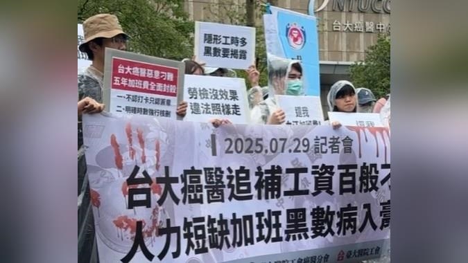 即時中心/蔣巧薇報導我國醫療人員人力嚴重短缺,造成多位醫師護理師經常超時加班,台大醫院過去存在加班只能以小時計情況,台大醫院工會去(2024)年成功爭取「加班費計算至分鐘」,依法可回溯追捕5年加班費,但申請過程疑似遭癌醫中心惡意阻撓。對此,台大癌醫中心分院基層今(29)日與工會代表召開記者會提出三大訴求:台大癌醫應停止刁難5年加班費追補、勞動部應精進完善現行勞動檢查制度、衛福部應盤點檢討臨床隱形工時違法熱點。