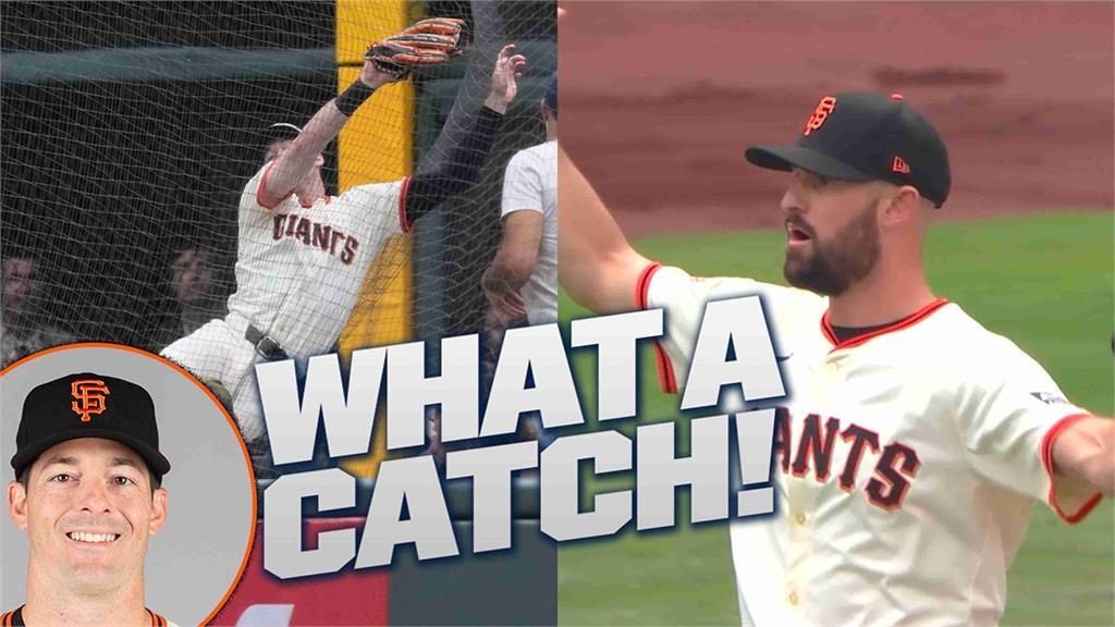 MLB(影)/「翻牆接殺」超瘋狂!巨人「名人堂之孫」摔進護網「美技無極限」