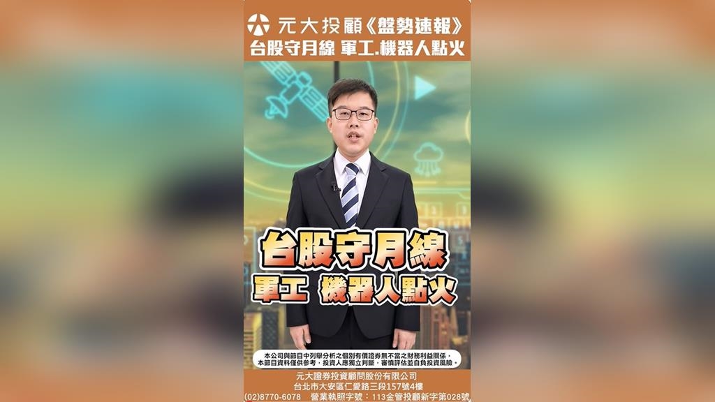 20250804盤勢速報-等待232條款,半導體關稅主菜!台股觀望,資金轉進軍工.機器人題材燒,給我一分鐘帶你看台股守月線,軍工、機器人點火,由元大投顧專業經理翁祥維證券分析師帶來專業分析。