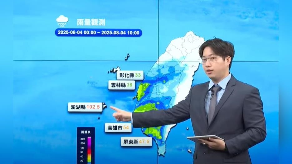 因此趙竑續指,今天除了中南部地區,澎湖民眾也應特別留意降雨情況。另外,他也提醒道,南部地區、特別是高屏山區,還是有機會出現豪雨;其餘南部各地、金馬、澎湖,也要留意局部大雨的可能性。