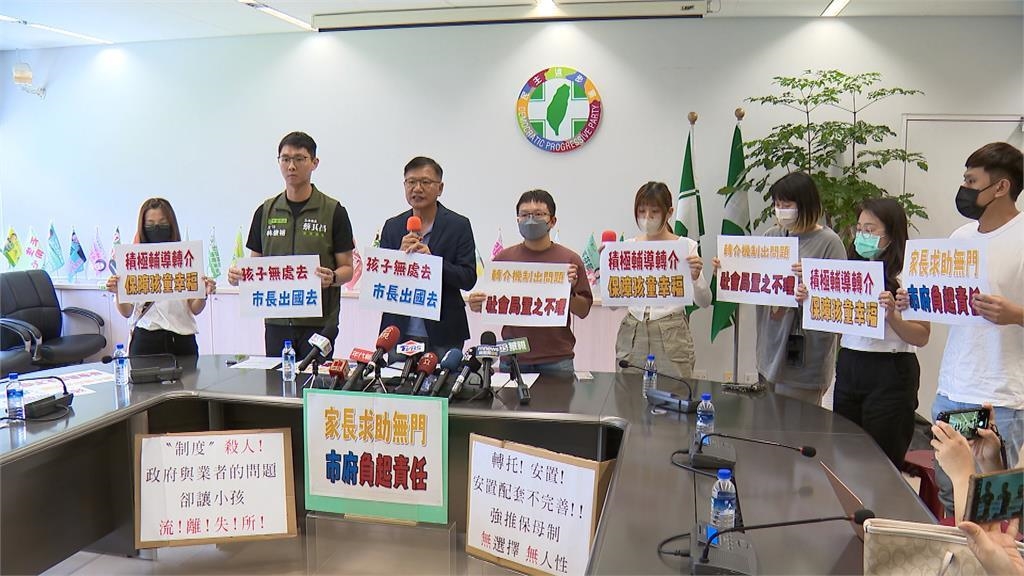 民進黨台中市議會黨團,陪同家長們召開記者會,控訴政府與業者造成的問題,導致原本已經排到公托的小孩,因為業者被中止公托資格,家長臨時要找公托,頻頻碰壁,求助無門!