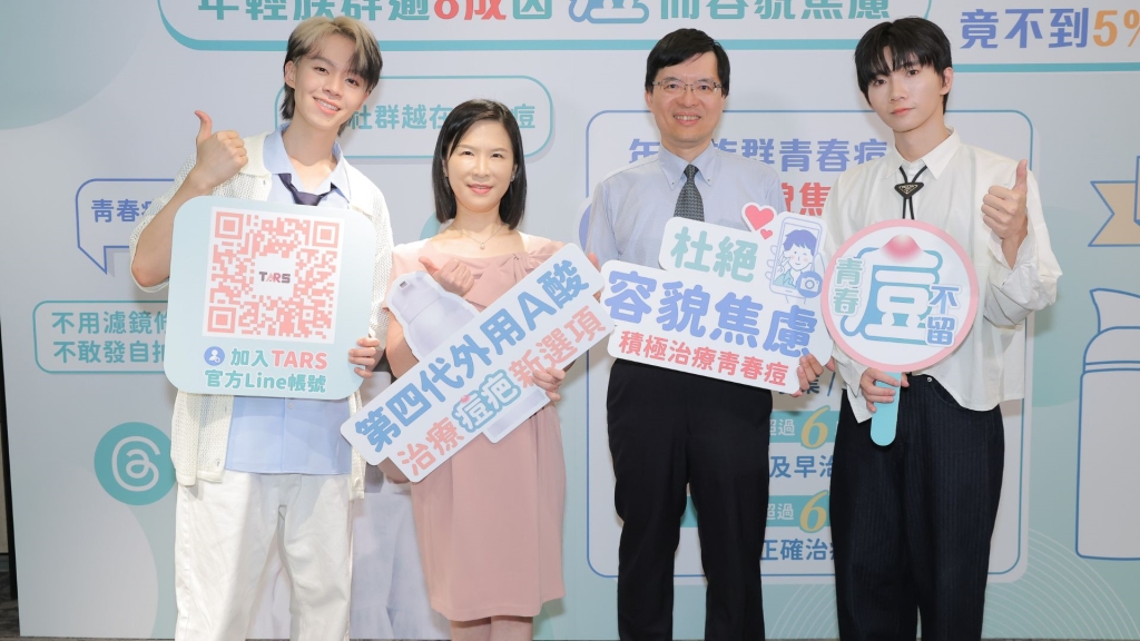 青春期是青少年身心快速發展的階段,然而「臉上的痘痘」卻常常成為他們自信心的破口。台灣青春痘暨玫瑰斑協會於記者會公布【2025 TARS 青春痘與容貌焦慮大調查】結果,發現台灣12-35歲的年輕族群,有超過八成以上會因為青春痘而陷入出現焦慮狀況,且有痘痘與痘疤的人相較沒有的人,對自己外貌不滿意的比例高出2倍以上。TARS理事長、醫師邱品齊與台北長庚醫院皮膚部醫師黃毓惠特別呼籲國人應重視皮膚健康教育,青春痘問題應在早期接受治療,避免後續造成容貌焦慮、成為社交中的阻礙。