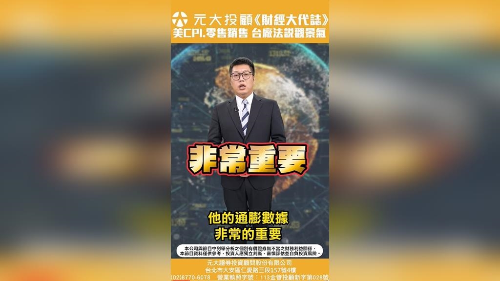 財經中心/綜合報導《財經大代誌》-關稅影響關注美國CPI.零售銷售 台廠法說觀察產業景氣動向,由元大投顧專業經理游豐進證券分析師為您專業分析。