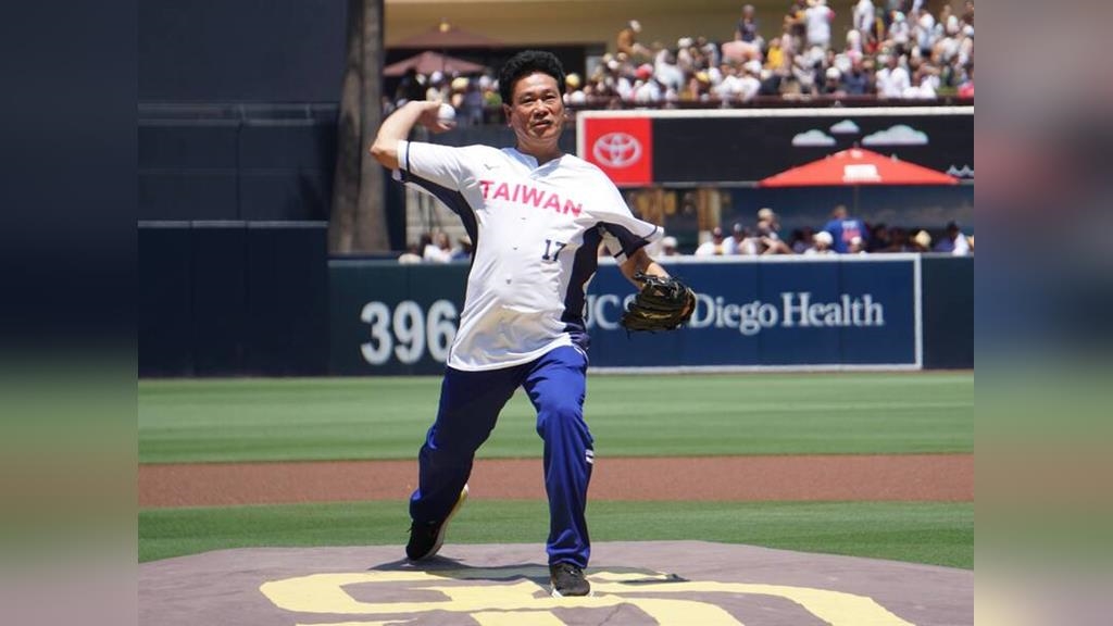聖地牙哥教士隊舉辦「台灣日」活動,吸引超過千名球迷與僑胞參與,台灣傳奇投手「假日飛刀手」陳義信身穿17號背號的Taiwan球衣開球,他精準的投球,讓接球的捕手稱讚「控球精準,這是我接過最好的開球投手!」