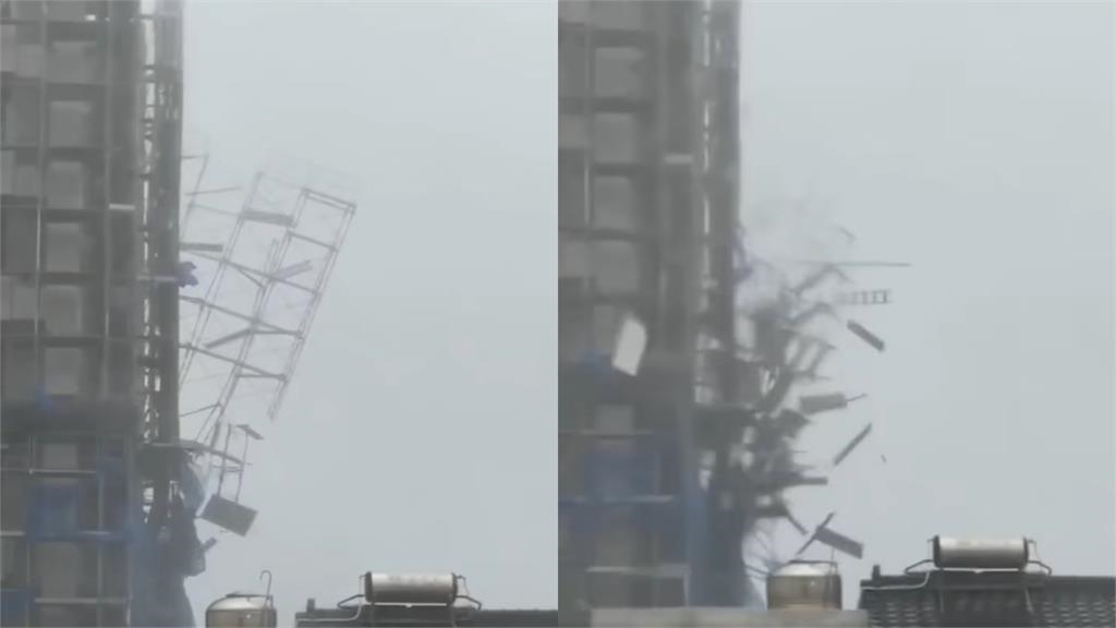 1名網友在臉書社團《爆料公社》分享影片,只見大同路上,某棟正在施工的大樓,正遭到狂風暴雨侵襲,沒想到下秒施工的整面牆,竟被「整片吹倒」滿滿鋼架全部被吹到地上;除此之外,在富岡里,則是有漁民的漁船被吹到馬路上;而在四維路上一間幼兒園,則是因颱風關係,門口內堆滿了無數鐵皮,災情可說是相當嚴重。