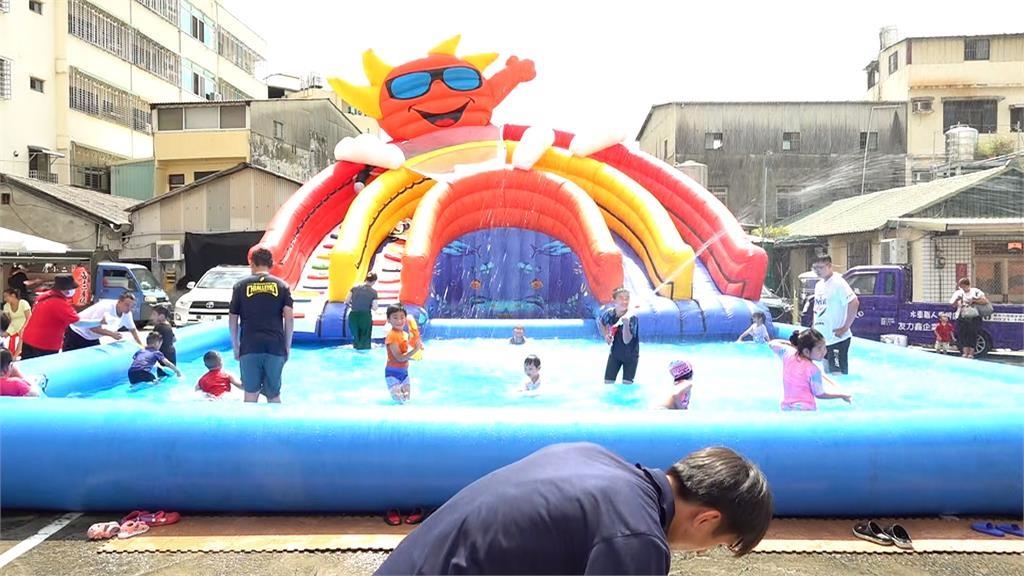 天氣持續高溫炎熱,台中太平有十個里和宮廟聯合舉辦了夏日潑水季,吸引家長帶著小朋友來戲水消暑,因為暑假已經過了一大半,把握時間帶著孩子走出戶外。