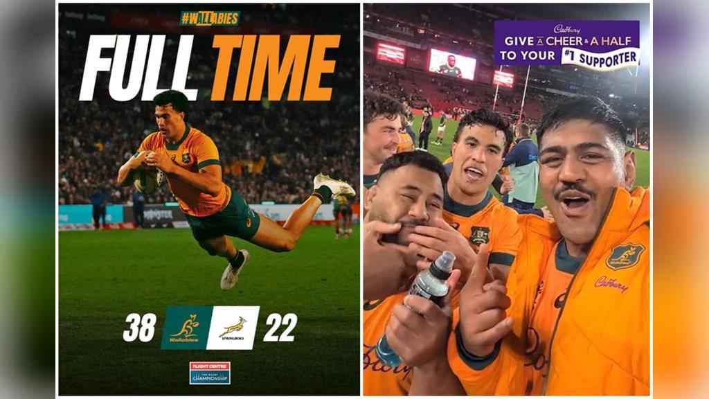 即時中心/林耿郁報導一場球賽輸了整整22分,還有可能逆轉得勝嗎?正在南非約翰尼斯堡舉行的「橄欖球錦標賽」揭幕戰,出現令人瞠目結舌的大逆轉!澳洲隊(Wallabies)開賽短短20分鐘,就陷入0比22的絕境;但後續竟然連拿38分,最終以38:22的離譜比數,擊敗衛冕世界冠軍的南非隊(Springboks),拿下自1963年以來,睽違超過60年「客場取勝」的偉大勝利。