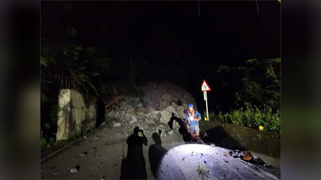 由於坍方量大、且持續落石中,於31.5K及33.7K進行疏導管制,呼籲請用路人非必要勿前往,預估下午3點搶通。