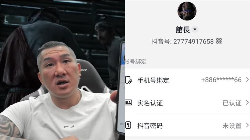 館長昨(21)日晚間直播時,曬出自己開通抖音帳號的手機畫面,甚至刻意用手遮住抖音號,直喊「不要追!不要追!不要追我!」,並開轟「民進黨去吃大X吧!」。隨後館長則透過臉書、IG發文,再度曬出抖音帳號畫面,只見他已通過實名認證,綁定了在台灣的手機號碼。