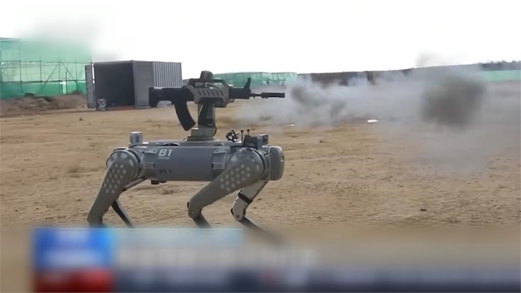 台北副市長李四川,在市府外的人行道,溜著"智能機器狗",走了一大圈進行巡檢,但仔細一看,這畫面怎麼似曾相識。中共解放軍:「機器狗牠可以在我們的訓練當中,代替我們的隊員,先行進行偵查和發現敵人後火力打擊。」揹著機槍,進行偵查攻擊,去年中共軍演展示,用於巷戰跟地面情蒐的機械狗,兩者比一比,除了背上儀器不同之外,竟然是同一款,而且第一時間還謊稱是美國製。