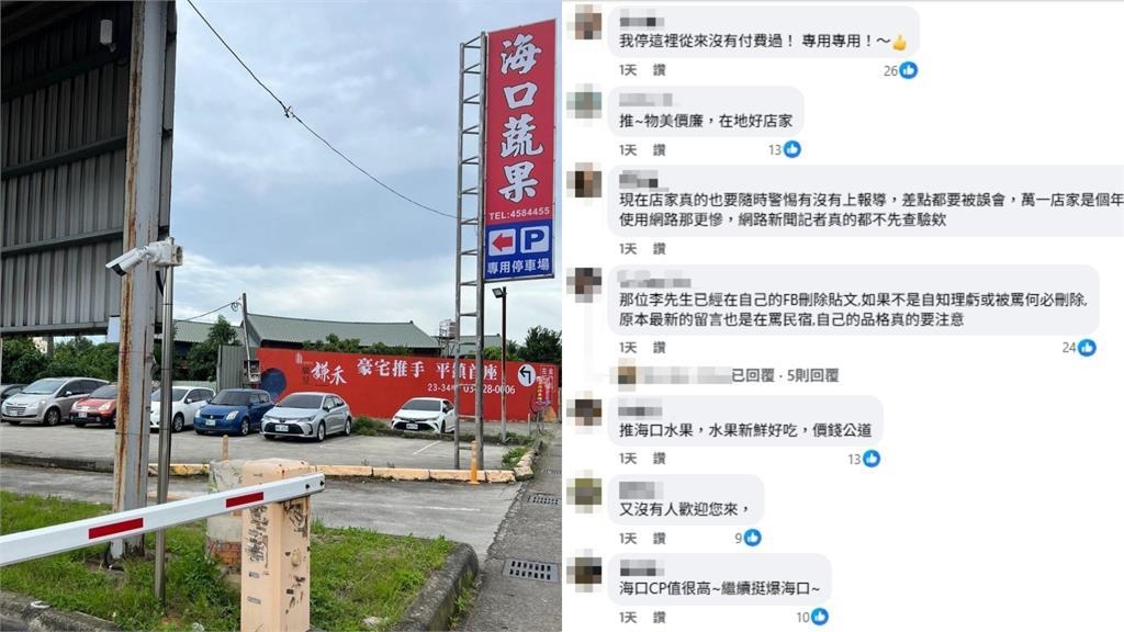該間水果行則透過臉書發文,表示「李正文先生對外說明的停車場一事,並非屬實」,透露停車場是自行與地主租用,提供給消費者購物方便使用,也因附近無較大場地,故僅能租用斜對面作為停車場,指出停車是於「一小時內是不限金額」可免費停車,小商家經營,店面並非賣場型,相信各位挑選水果的時間非常足夠。