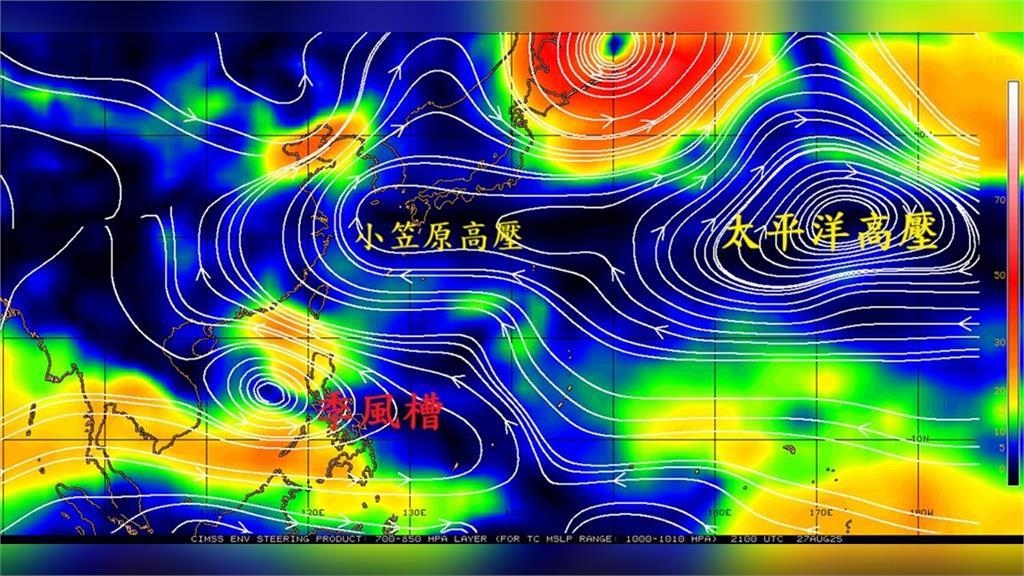 被稱為「颱風窩」的季風槽,由於大量熱對流的潛熱釋放,及低壓帶的旋轉特性,在環境適宜下,季風槽能長出一個又一個熱帶系統。而在今(28)日,前氣象局長鄭明典透過臉書發文,表示「季風槽又增強!」,並曬出1張「導引氣流圖」,表示「這張圖底色是風速,現在有一條明顯的強風帶,由孟加拉灣跨越中南半島南部及南海到菲律賓,這還是南亞夏季風!」。