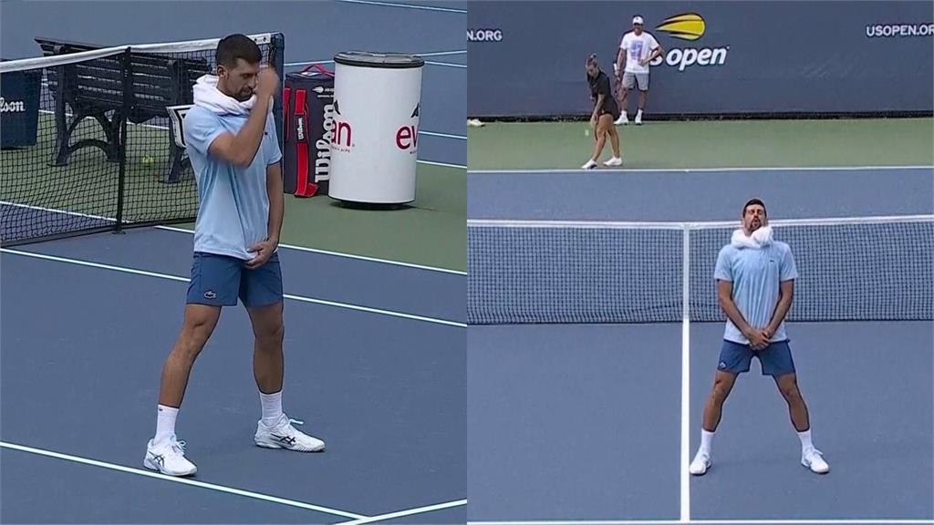 美國網球公開賽近日除了比賽內容吸引球迷,球王、球后們場外花絮同樣很吸睛,喬科維奇(Novak Djokovic)和莎芭蓮卡(Aryna Sabalenka)一起練球時,玩起「胯下穿越」特技球挑戰,「喬帥」背對莎芭蓮卡發球,在等待過程中偷偷比劃十字替自己祈禱過關,最終莎芭蓮卡成功打出穿越喬科維奇雙腳間的好球,驚豔全場也讓喬帥鬆了一口氣。