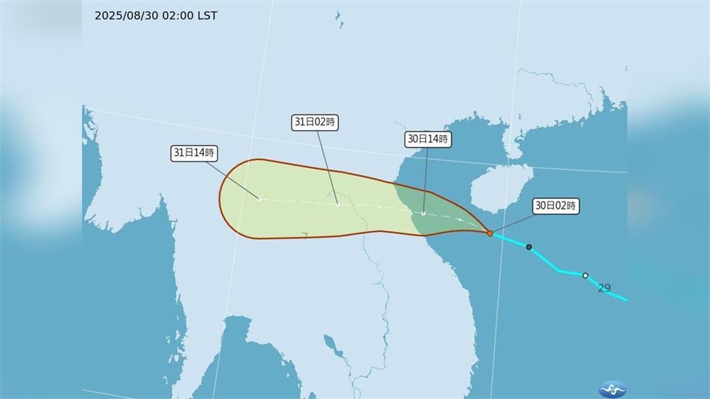 即時中心/温芸萱報導中央氣象署今(30)日上午8點發布最新訊息,原位於南海的熱帶性低氣壓,正式發展成今年第14號輕度颱風「藍湖」(國際命名NONGFA)。目前中心位置在北緯17.5度、東經109.5度,中心氣壓998百帕,近中心最大風速每秒15公尺,瞬間最大陣風達23公尺。氣象署指出,藍湖以時速28公里往西北西移動,預估將直撲越南登陸,對台灣天氣不會有影響,不過提醒海上活動的民眾仍要注意安全。