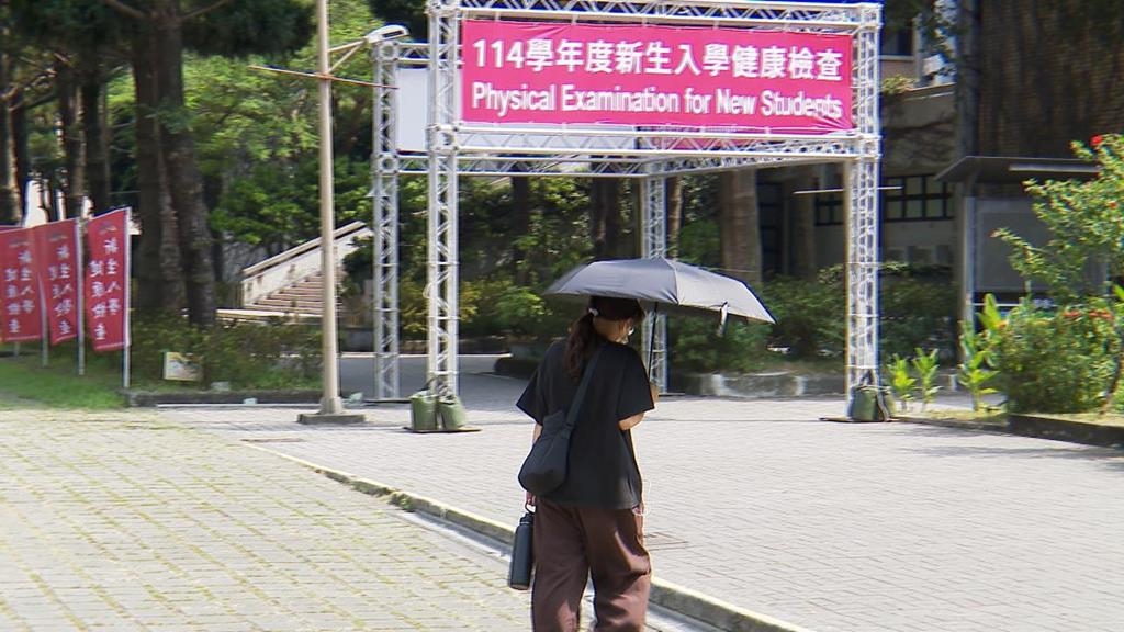 台北科技大學校園裡,插著旗幟,新生入學健檢登場,學生們準備迎接大學生活,但在這之前,還有一場考試,等著他們。
