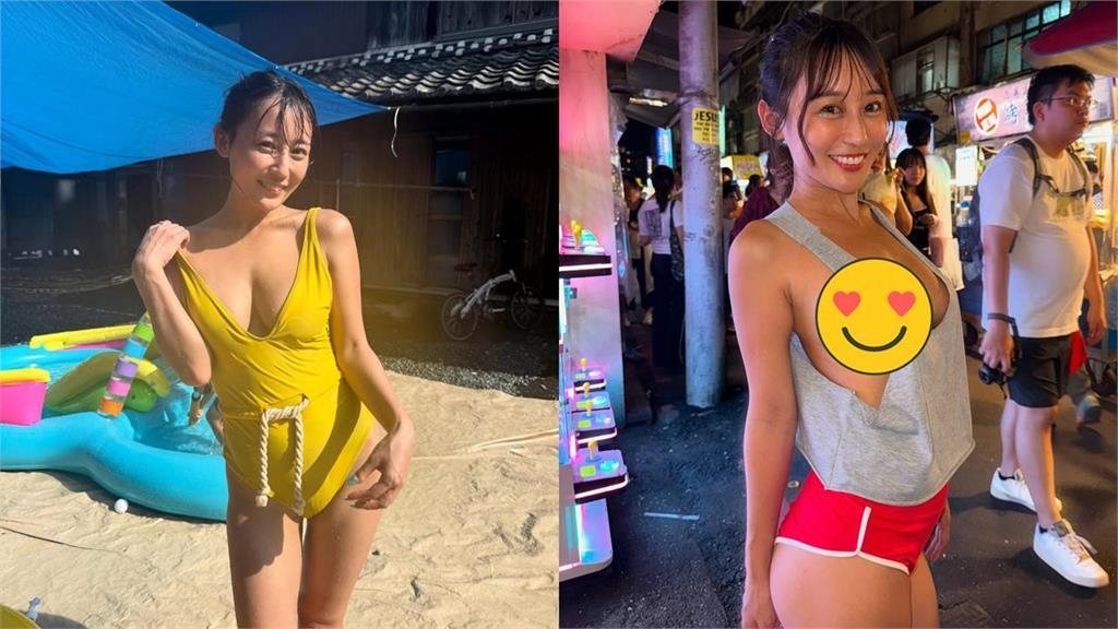 日本寫真女星 macca(左圖)現身台北饒河夜市。(圖/翻攝自IG@macca03x)