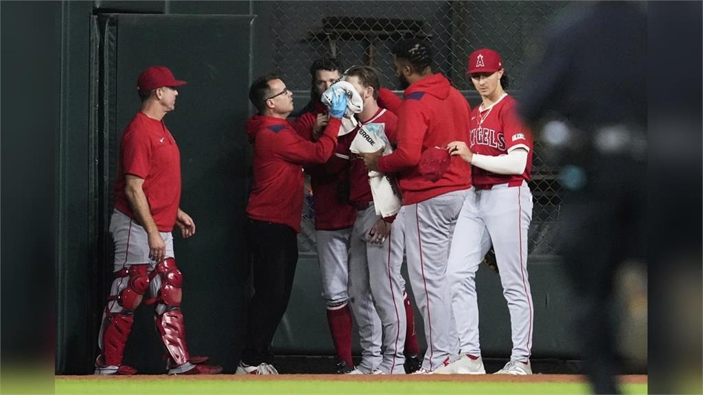MLB(影)/撞到頭破血流! 天使外野手為接高飛球發生意外退場