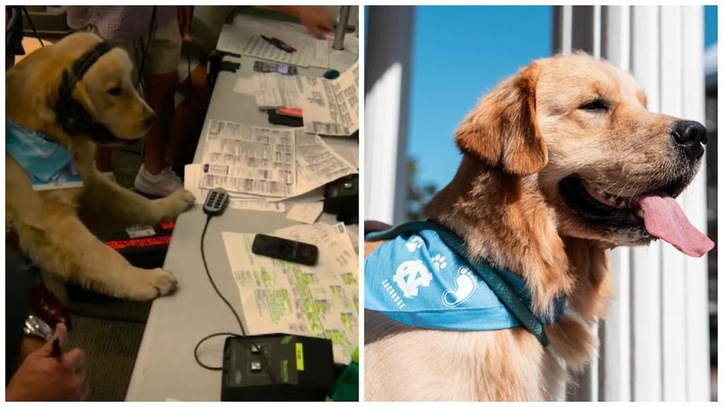 美式足球(影)/嘿嘿嘿!黃金獵犬成「狗主播」 戴耳麥大口呼氣萌樣全都錄
