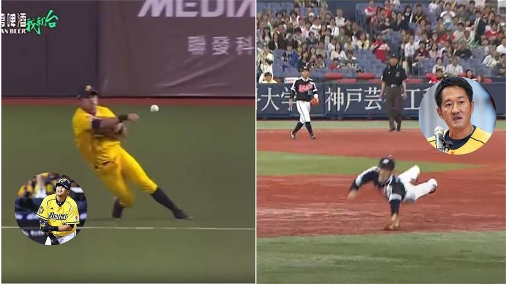 還有網友翻出上周日味全龍與中信兄弟之戰,黃衫軍二壘手岳東華飛撲強勁滾地球,起身刺殺動作,幾乎完全「鏡像復刻」總教練平野當時守備的精采演出。球迷讚道,「岳哥什麼時候去日本了??」、「難怪他會很看重岳東華!!」、「今年的金手套可以給偶們的岳大哥了吧。」岳東華曾在2019年拿下中華職棒年度最佳美技獎,本季目前以二壘手身分全勤出賽92場,守備率0.984。