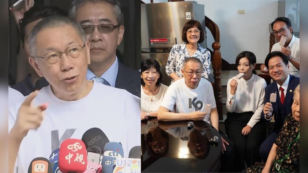 前民眾黨主席柯文哲捲入京華城案,被羈押1年後獲裁定7000萬交保,他步出法院門口只發表簡單談話,就趕回新竹老家見柯媽何瑞英,過了火爐、踩瓦片後開吃媽媽準備的冰棒,還拍下一家人齊吃冰棒畫面,紀念他重獲自由。不過這張原本是展現溫馨氣氛的合照,卻意外因身後1幕令全場歪樓,甚至不少人笑說,「有阿嬤的人就懂!」
