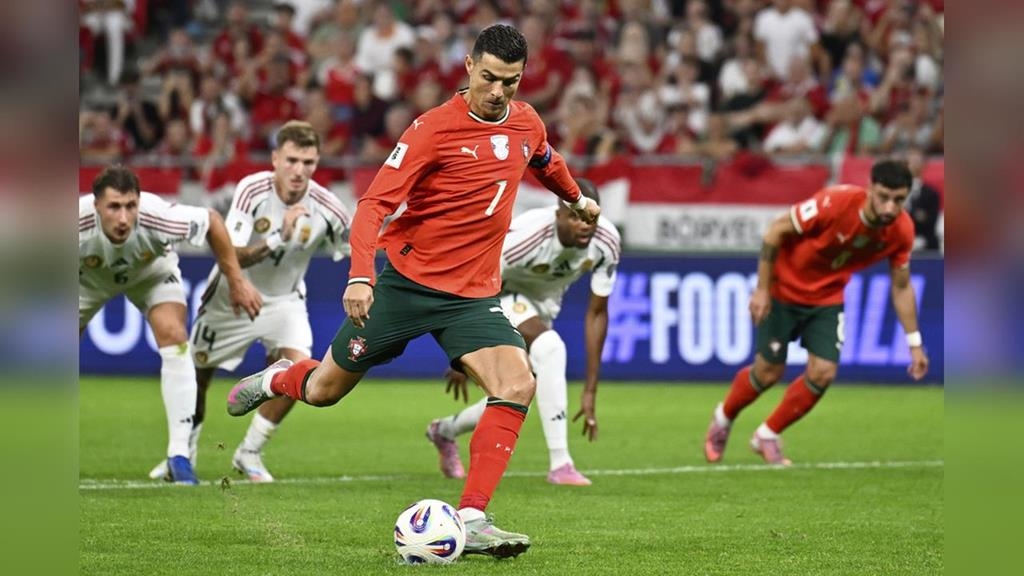 2026世界盃歐洲區資格賽,40歲的葡萄牙巨星C羅依然寶刀未老,在F組對匈牙利的比賽,靠12碼罰踢攻進一球,繼續締造生涯紀錄,同時也幫助葡萄牙以3:2險勝,戰績2勝0敗積分6分,在分組暫居第一。