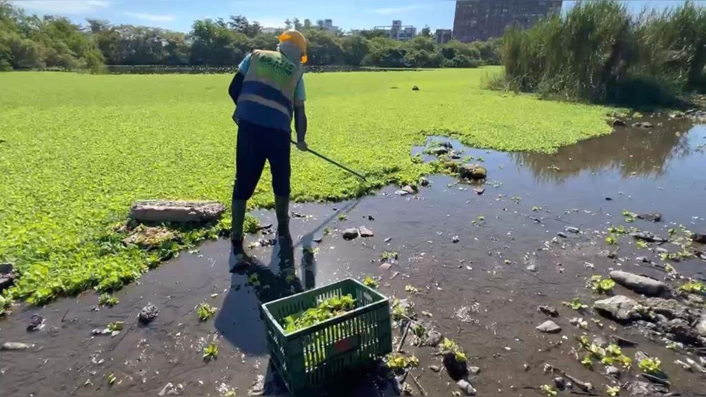 水芙蓉怎麽來的,林保署說不排除是鳥類,或被風吹來的,加上園區環境適合生長,導致大量繁殖,現在只能盡快清理,避免危及水中生物生存。