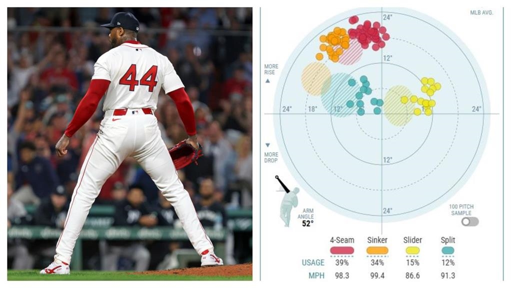 37歲紅襪終結者查普曼(Aroldis Chapman )再次展現火球實力,對老東家洋基拿下本季第 30 次救援成功,值得一提的是對最後出局數「百英里火球」連發,讓芬威球場全場沸騰。本季他的防禦率與每局被上壘率皆創新低,球種運用呈現驚人數據。