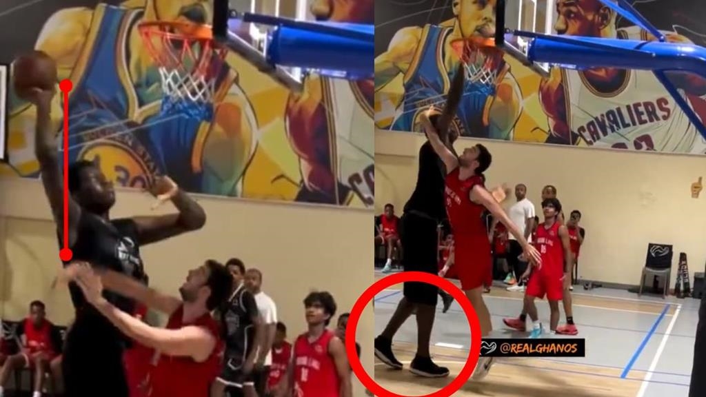 網路上近日流傳著一位迦納籍號稱身高達到「8呎(約244公分)」的巨人打籃球片段,只見他站在高度305公分的籃框旁邊舉手就快摸到框,根本在二樓打球的他,讓對手狂跳都摸不到球皮,最後一巴掌塞進籃框,就像喝水一樣輕鬆,看傻球迷。