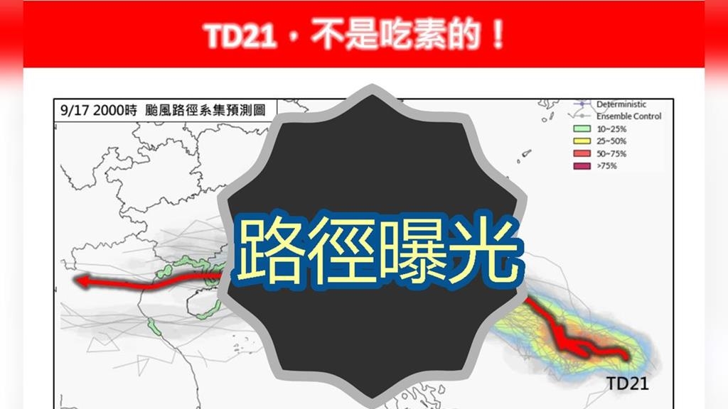 對此,林得恩示警「TD21,不是吃素的!」TD21後續在循環境駛流場的導引下,向西前進移動,且颱風環流範圍也相當寬廣、雨帶相當結實,將影響台灣天氣。若移動方向、移動速度及強度變化不改變,預計最快週日(21日)晚間發布颱風海上颱風警報;最快下週一(22日)緊接著發布颱風陸上颱風警報。要注意的是,下週一(22日)至下週三(24日),是颱風最靠近台灣陸地,也是風雨浪影響最大時段,外出需特別小心。